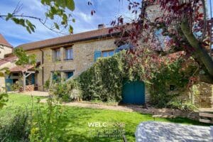 À seulement dix minutes de Cluny, dans un petit bourg au calme absolu, cette élégante maison en pierre développe environ 200 m² habitables, au cœur d’un environnement verdoyant et ouvert sur la campagne.