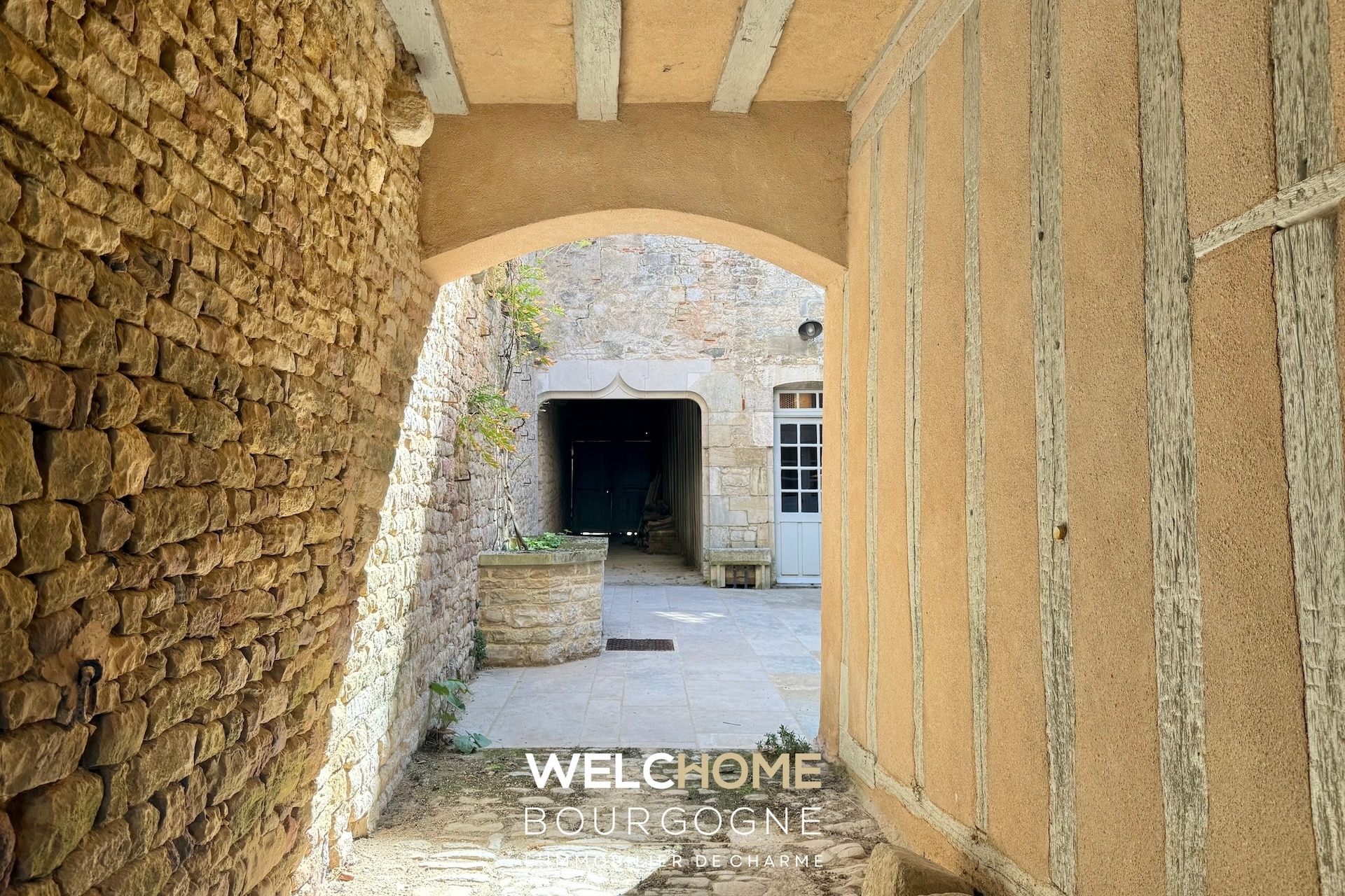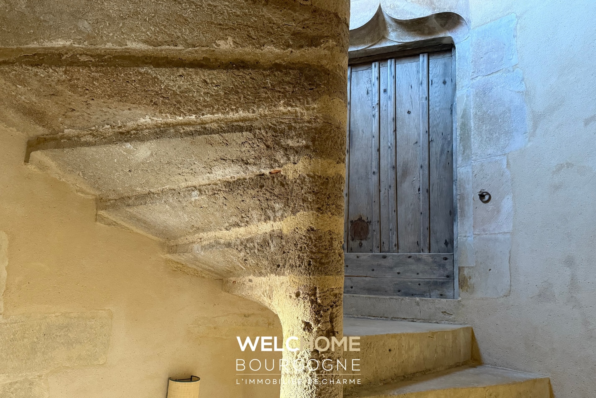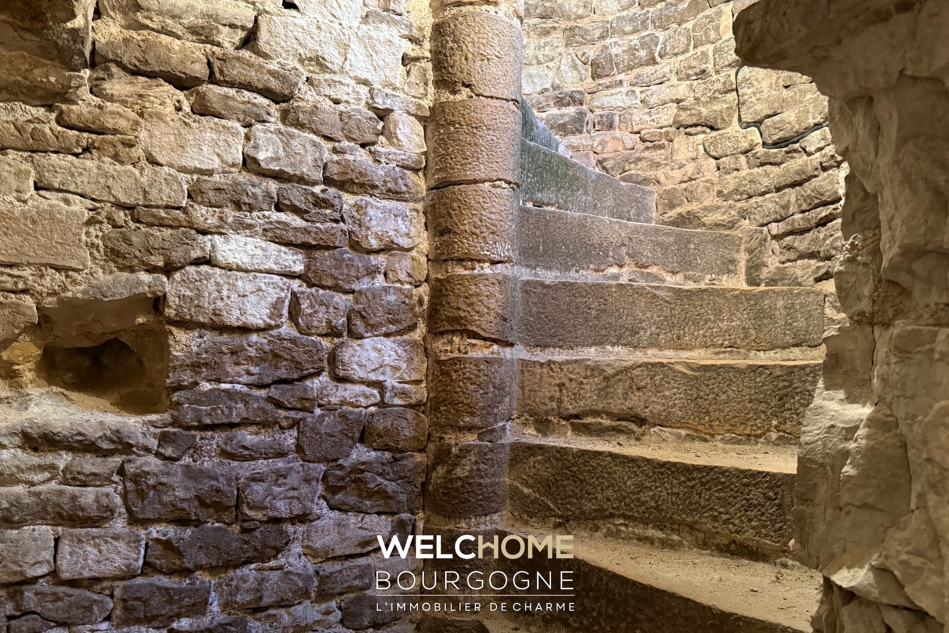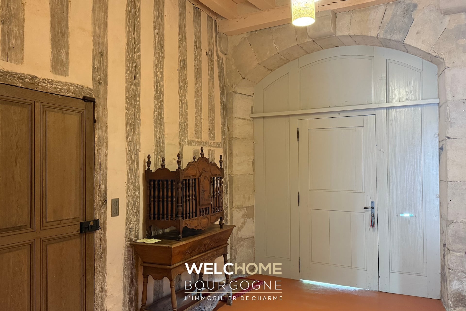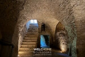 Édifiée sur plus de 250 m² de caves voûtées majestueuses, avec façades et toitures classées, elle révèle toute la richesse de son époque : escalier en pierre, tour octogonale, galerie bourguignonne, niches, cousiège, pierre d’évier et dalles anciennes. Chaque détail raconte l’histoire d’un art de vivre raffiné et authentique.