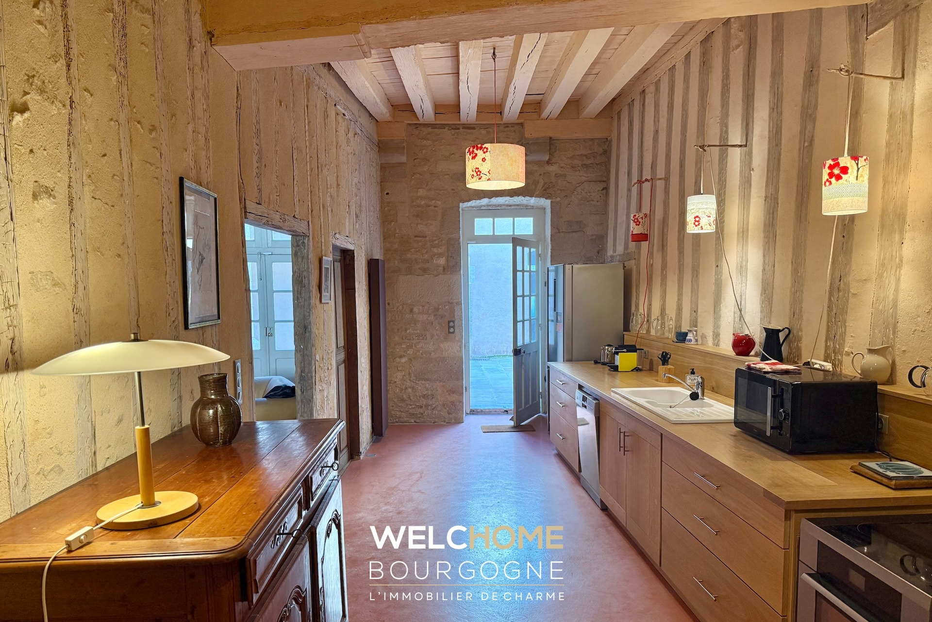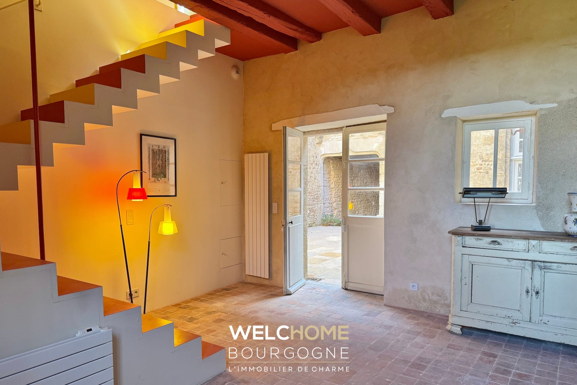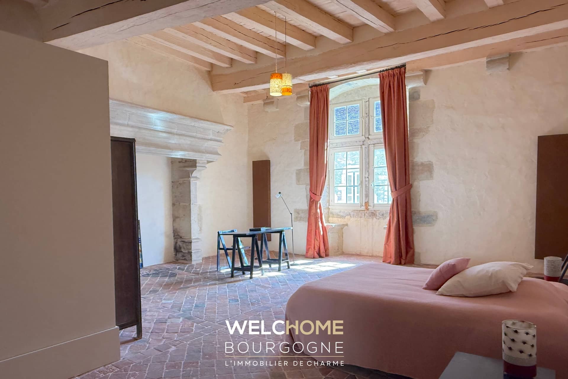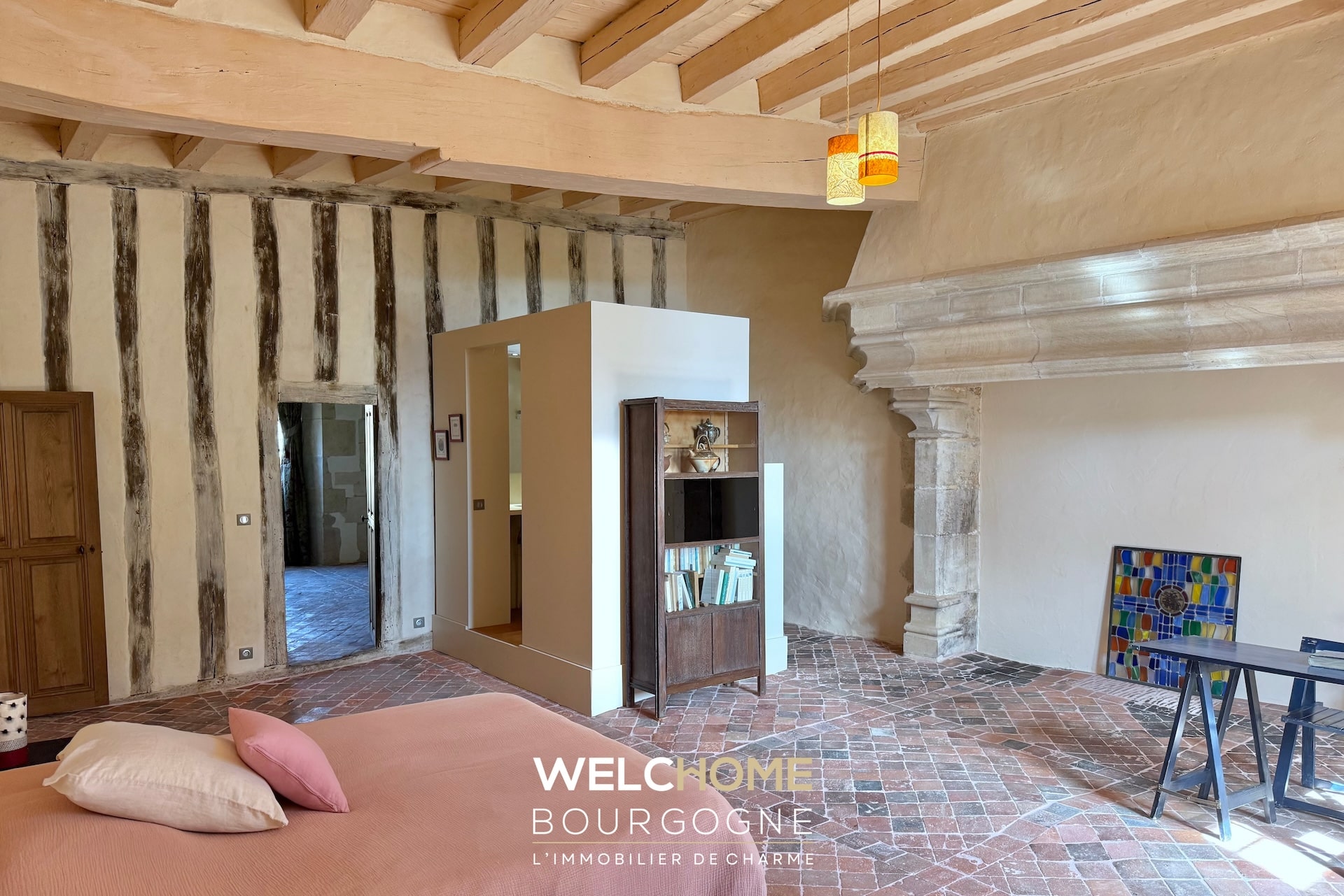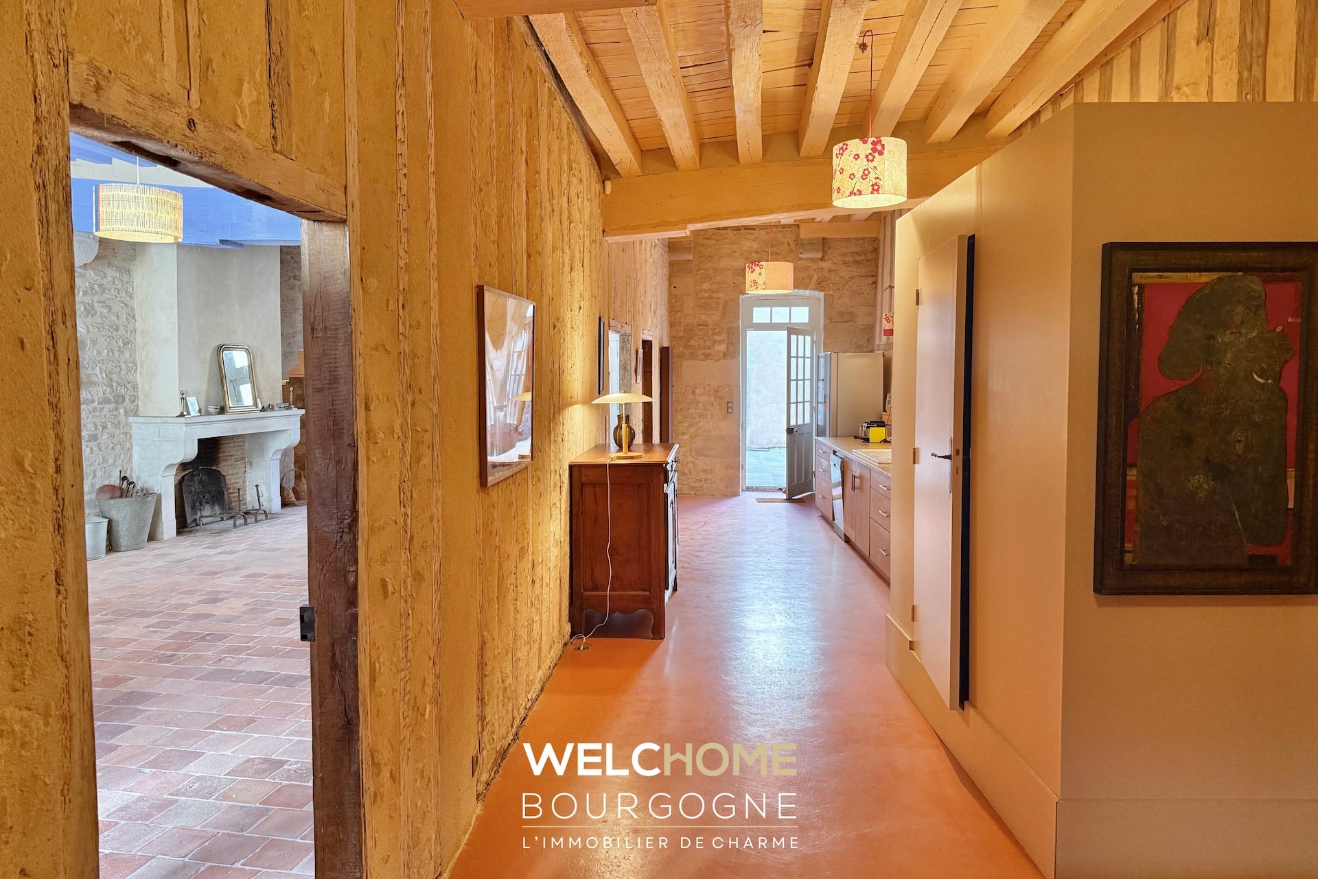 Édifiée sur plus de 250 m² de caves voûtées majestueuses, avec façades et toitures classées, elle révèle toute la richesse de son époque : escalier en pierre, tour octogonale, galerie bourguignonne, niches, cousiège, pierre d’évier et dalles anciennes. Chaque détail raconte l’histoire d’un art de vivre raffiné et authentique.