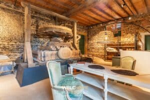 Le rez-de-chaussée propose une entrée élégante, un salon d’été, un espace bureau avec kitchenette, ainsi qu’une remarquable salle de réception installée dans l’ancien chai, sublimée par la présence d’un pressoir d’époque, témoin précieux de l’histoire des lieux. Les espaces de service (vestiaire, buanderie, chaufferie, douche et sanitaires) complètent ce niveau avec discrétion et fonctionnalité.