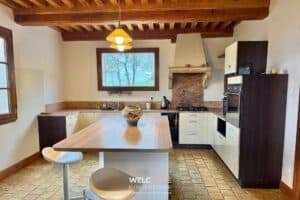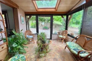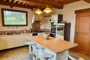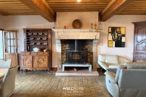 D’une surface de 270 m2, elle comprend au RDC, une entrée avec sanitaires, une cuisine équipée, un vaste séjour de 45 m2 avec cheminée, 2 chambres, une salle d’eau, une véranda, un bureau, un dressing, un wc et un garage.