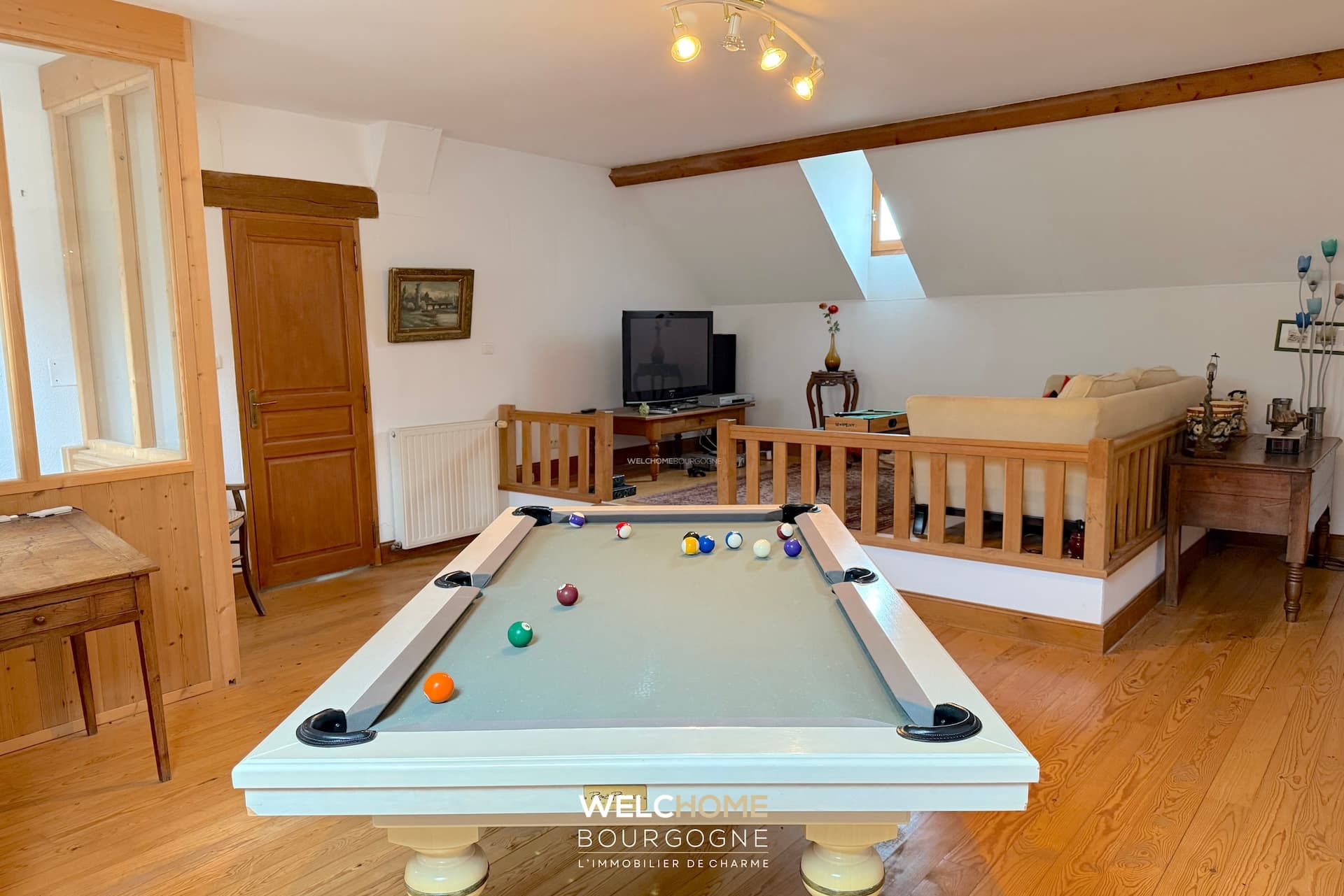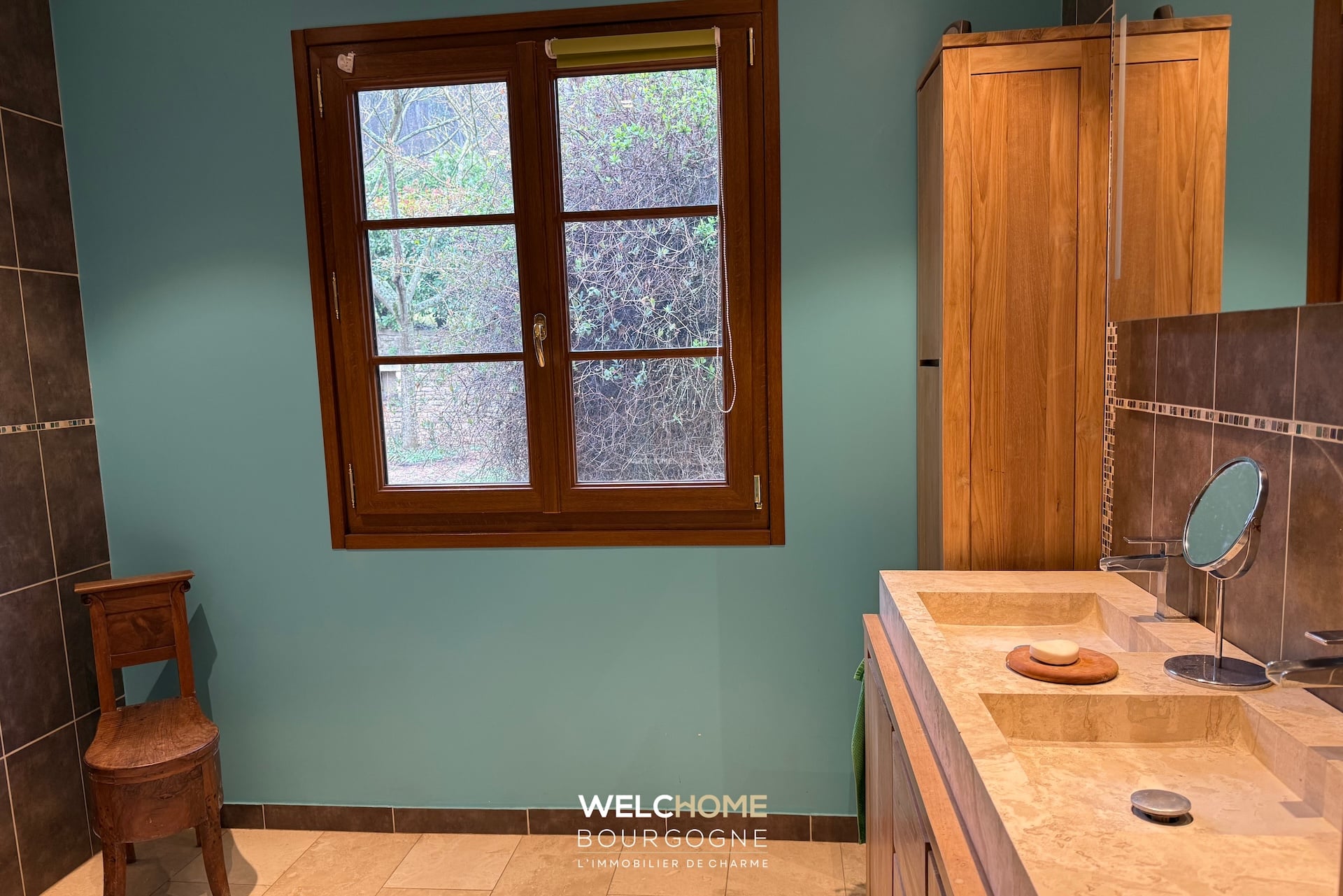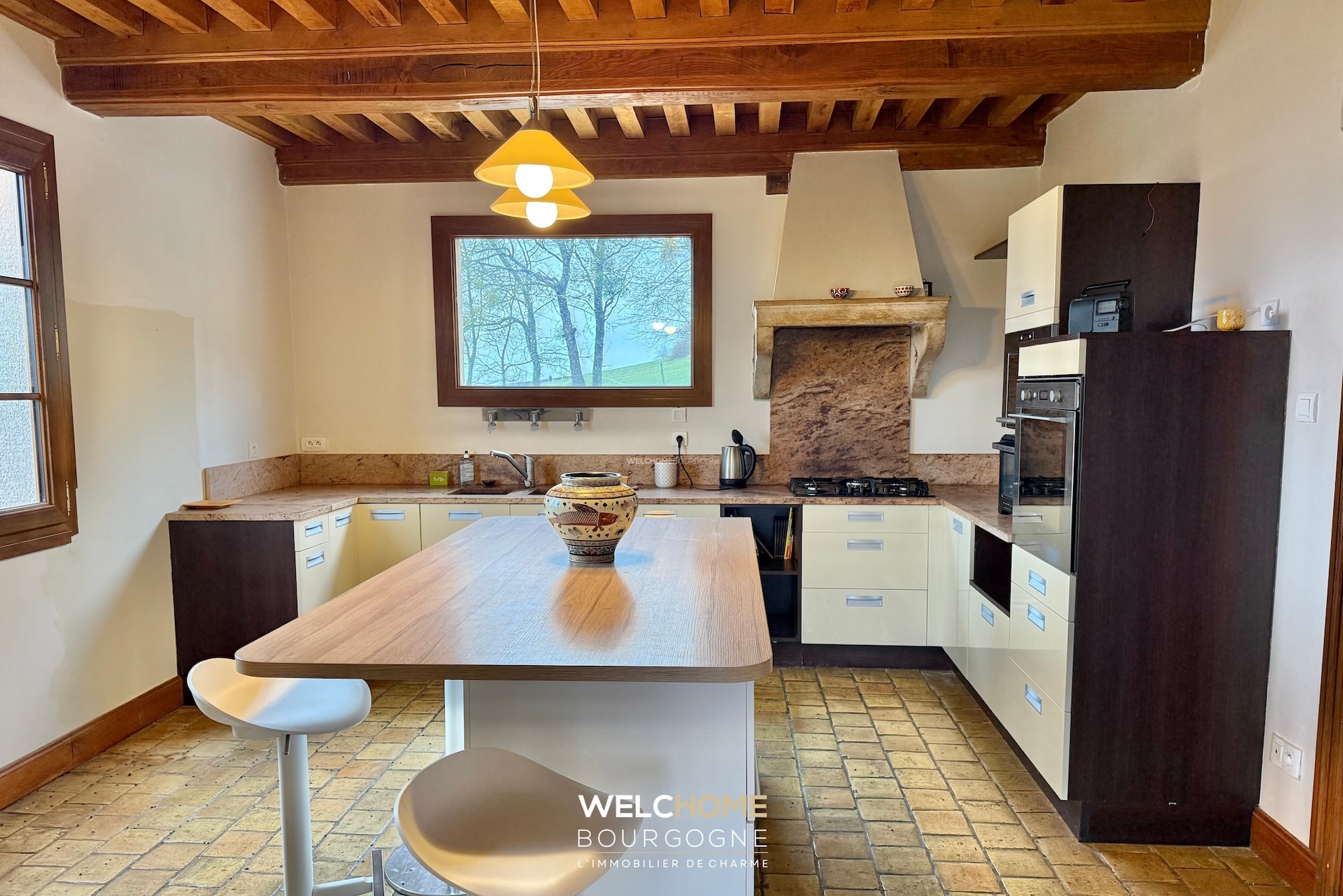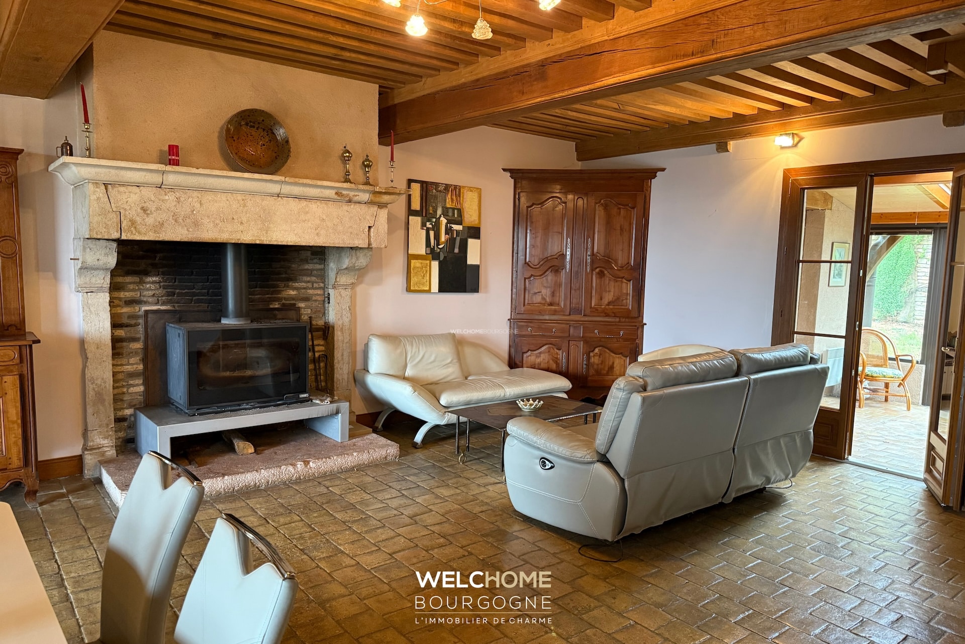 Située en position dominante et bénéficiant d’une vue exceptionnelle, cette maison traditionnelle a été construite dans l’esprit Bourguignon d’antan. Ainsi, elle profite d’un confort moderne tout en ayant le cachet de l’ancien, avec ses tomettes, sa cheminée magistrale ou ses plafonds à la Française.
