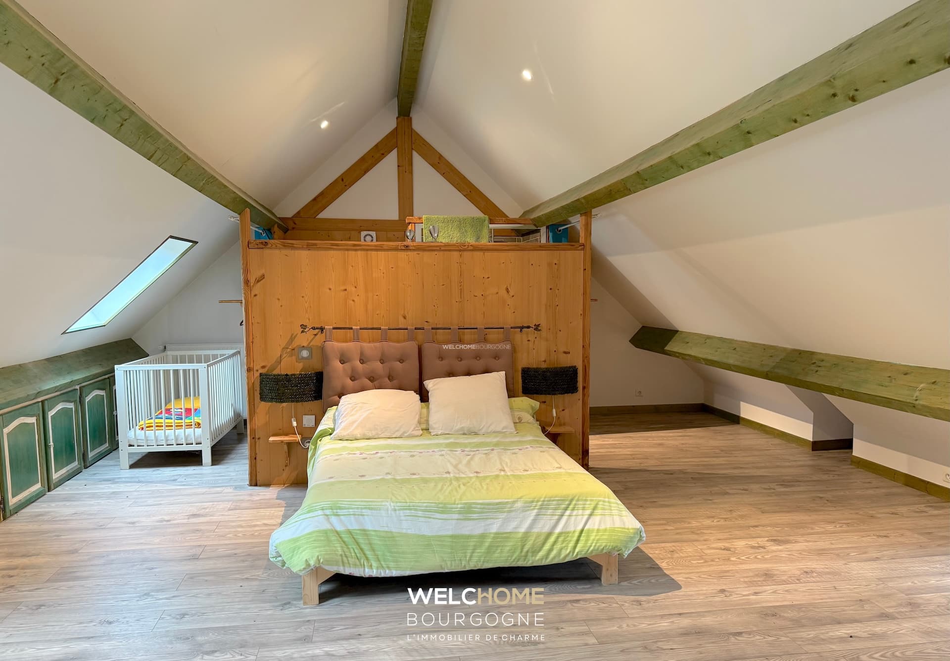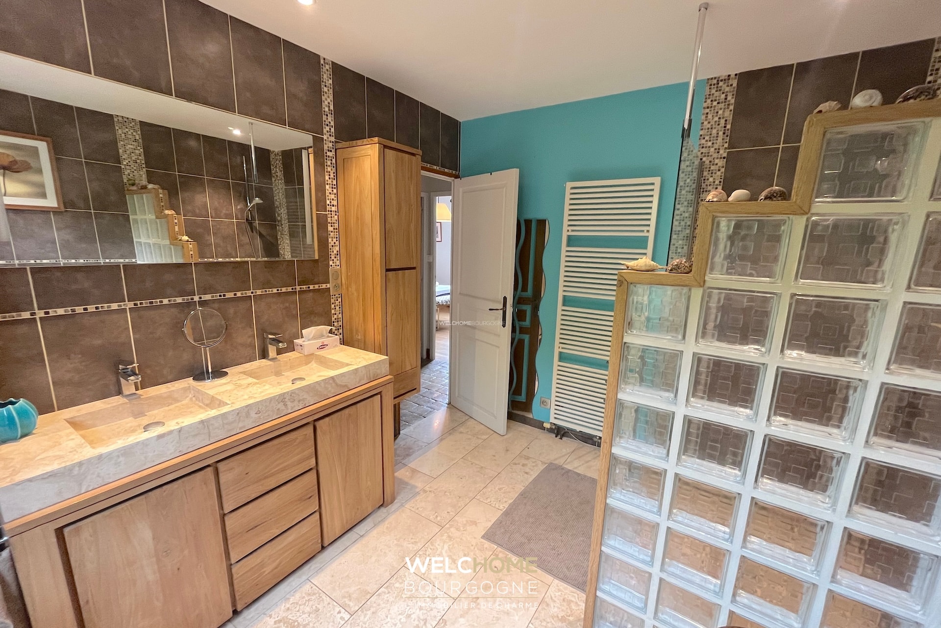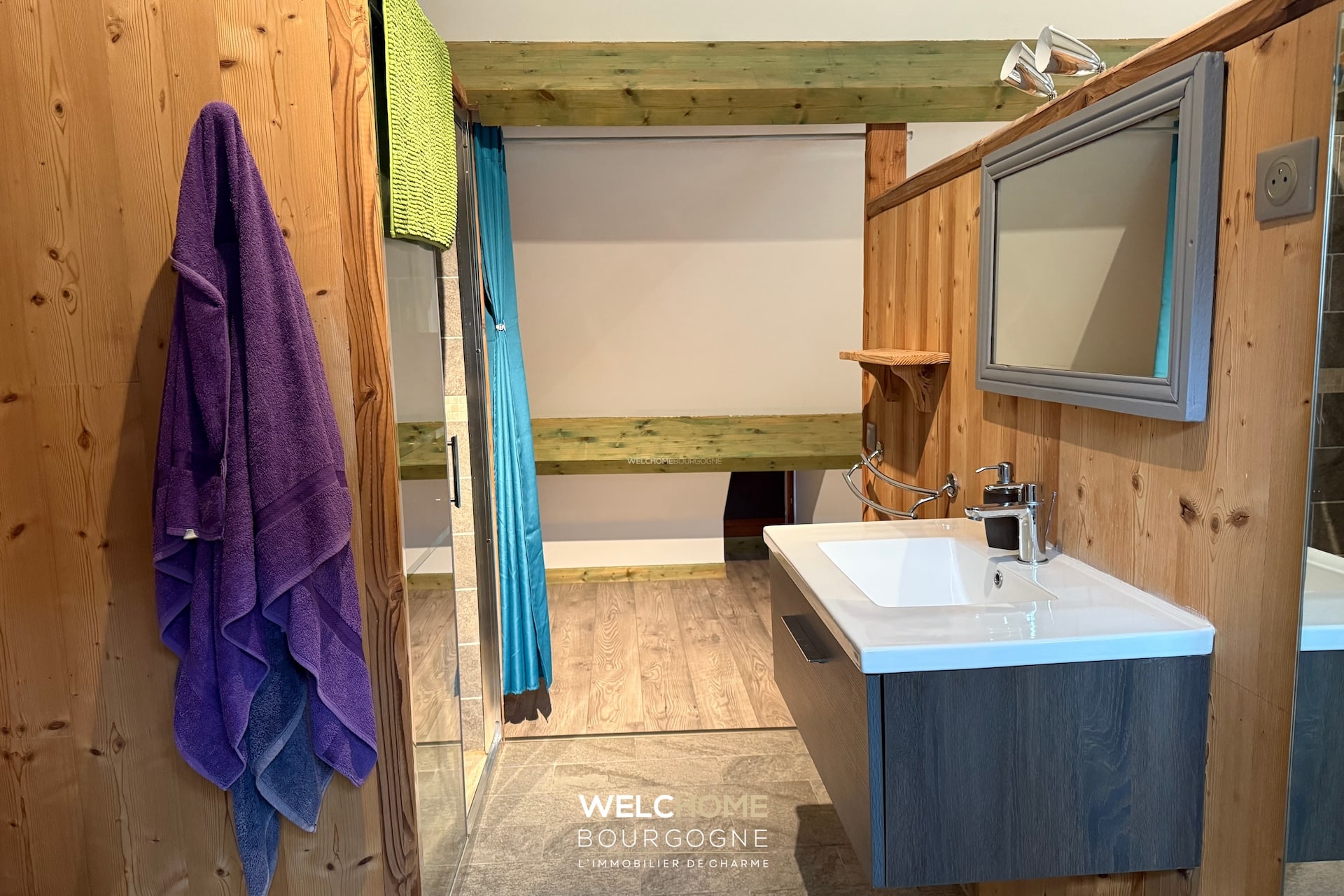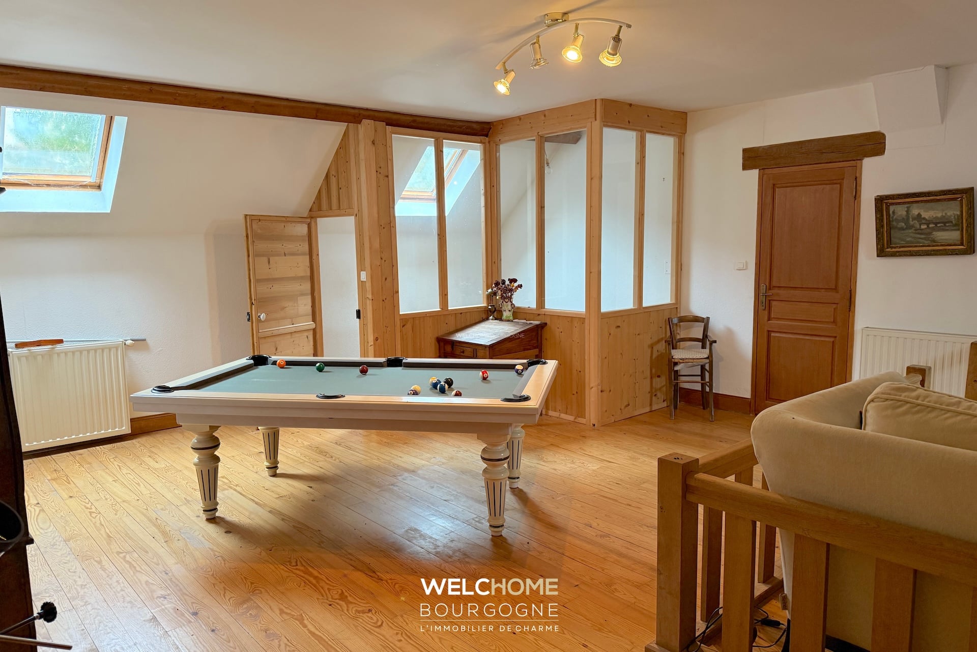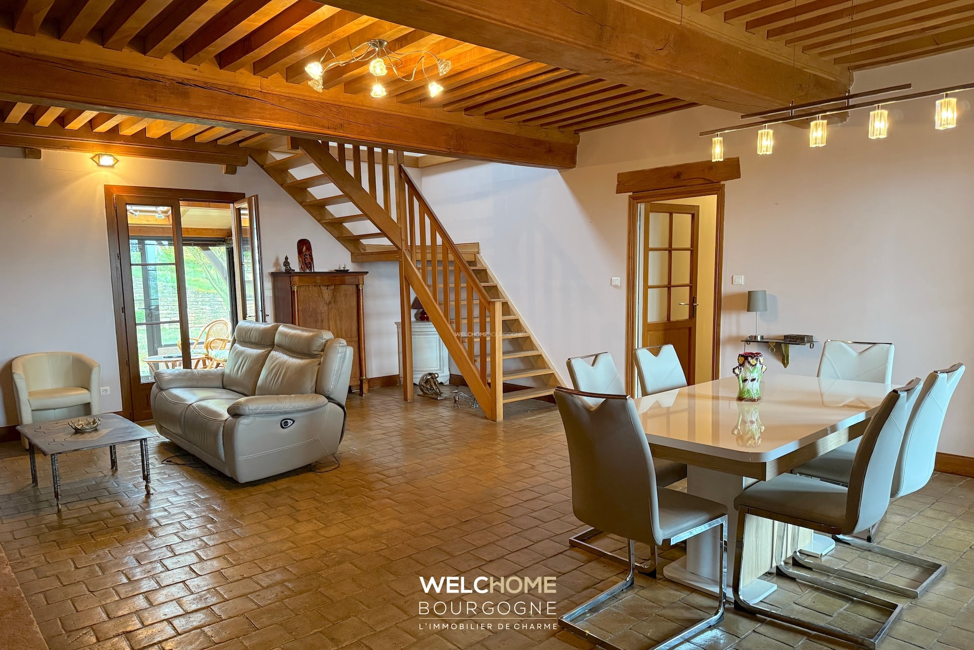 Située en position dominante et bénéficiant d’une vue exceptionnelle, cette maison traditionnelle a été construite dans l’esprit Bourguignon d’antan. Ainsi, elle profite d’un confort moderne tout en ayant le cachet de l’ancien, avec ses tomettes, sa cheminée magistrale ou ses plafonds à la Française.