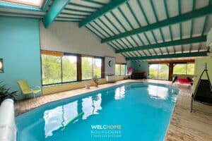 Enfin, attenant à la maison, un espace piscine couvert, et un auvent avec jacuzzi.