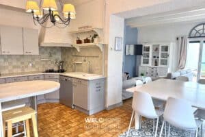 Le rez-de-chaussée propose une belle pièce de vie lumineuse avec cheminée insert, ouverte sur une cuisine conviviale prolongée par une véranda tournée vers le jardin