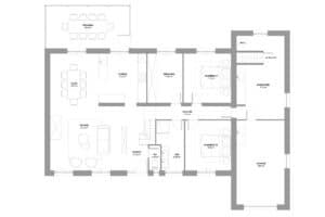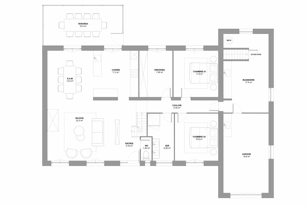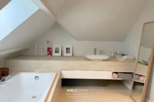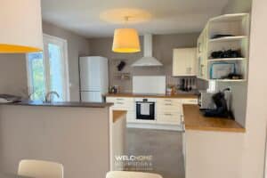Cette maison des années 1980, subtilement repensée par ses propriétaires actuels, allie volumes confortables, ambiance sobre et touches contemporaines. Elle développe une surface habitable d’environ 138 m², sur un superbe terrain arboré de 1 000 m², offrant un cadre de vie aussi paisible que pratique.