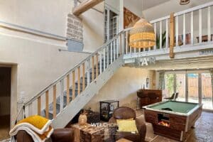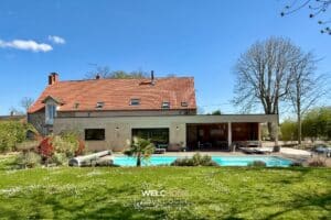 Située dans un environnement paisible et verdoyant, Cette propriété harmonise avec subtilité le caractère de la pierre et une architecture contemporaine. Composée d’une ferme en pierre authentique et d’une extension moderne, elle développe 275 m² habitables, offrant un cadre idéal pour une vie de famille.