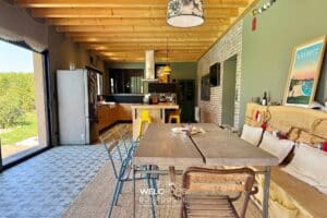 – Une cuisine ouverte donnant sur la terrasse, idéale pour les repas en extérieur. Egalement un petit cellier avec cave.