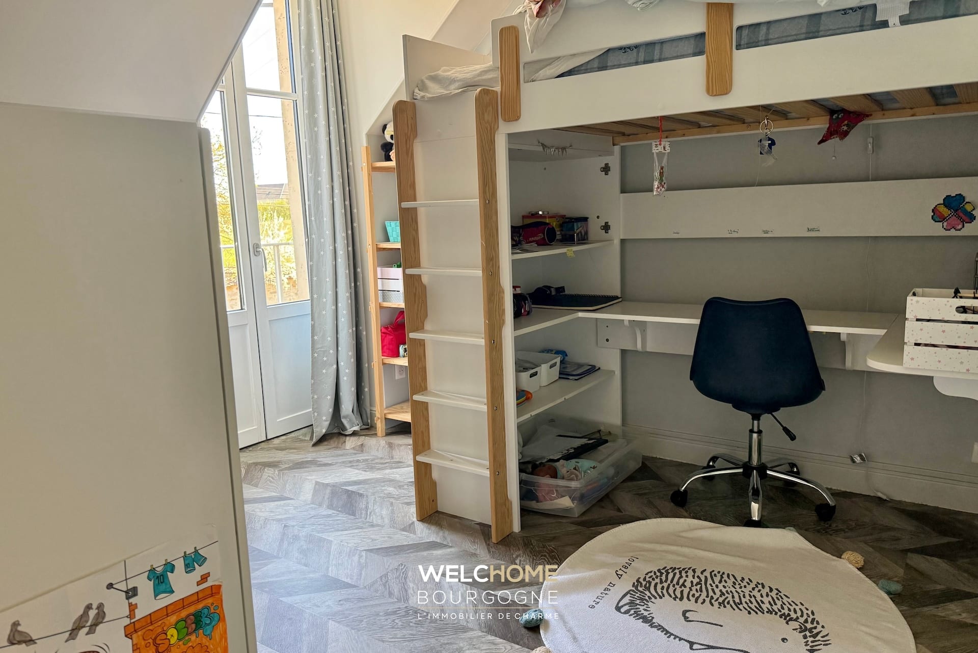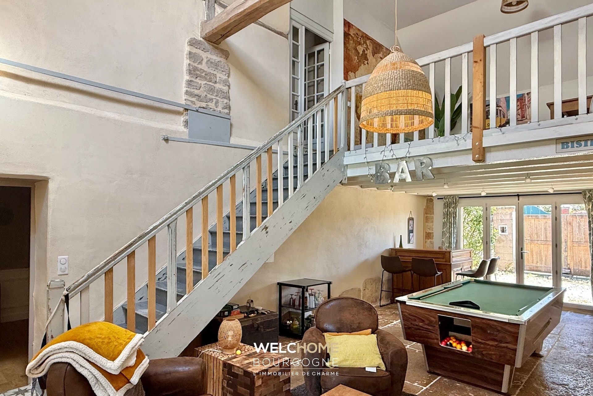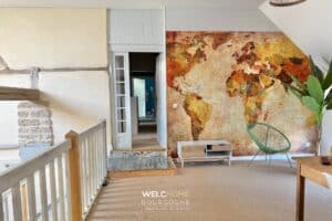 – Un espace bureau en mezzanine surplombant le salon.