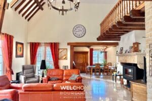 Aux portes de Givry, au cœur d’un environnement préservé, cette demeure d’architecture traditionnelle développe près de 273 m² habitables au sein d’un superbe parc paysager de plus de 6 000 m² entièrement clos, avec une vue exceptionnelle sur les vignobles environnants et un accès immédiat aux chemins de randonnée qui parcourent la Côte Chalonnaise.
