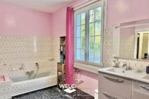 À l’étage, une grande pièce palière surplombe le séjour et dessert trois chambres dont une très spacieuse pouvant être aisément compartimentée en deux espaces nuits selon les besoins, une salle d’eau et un wc indépendant.