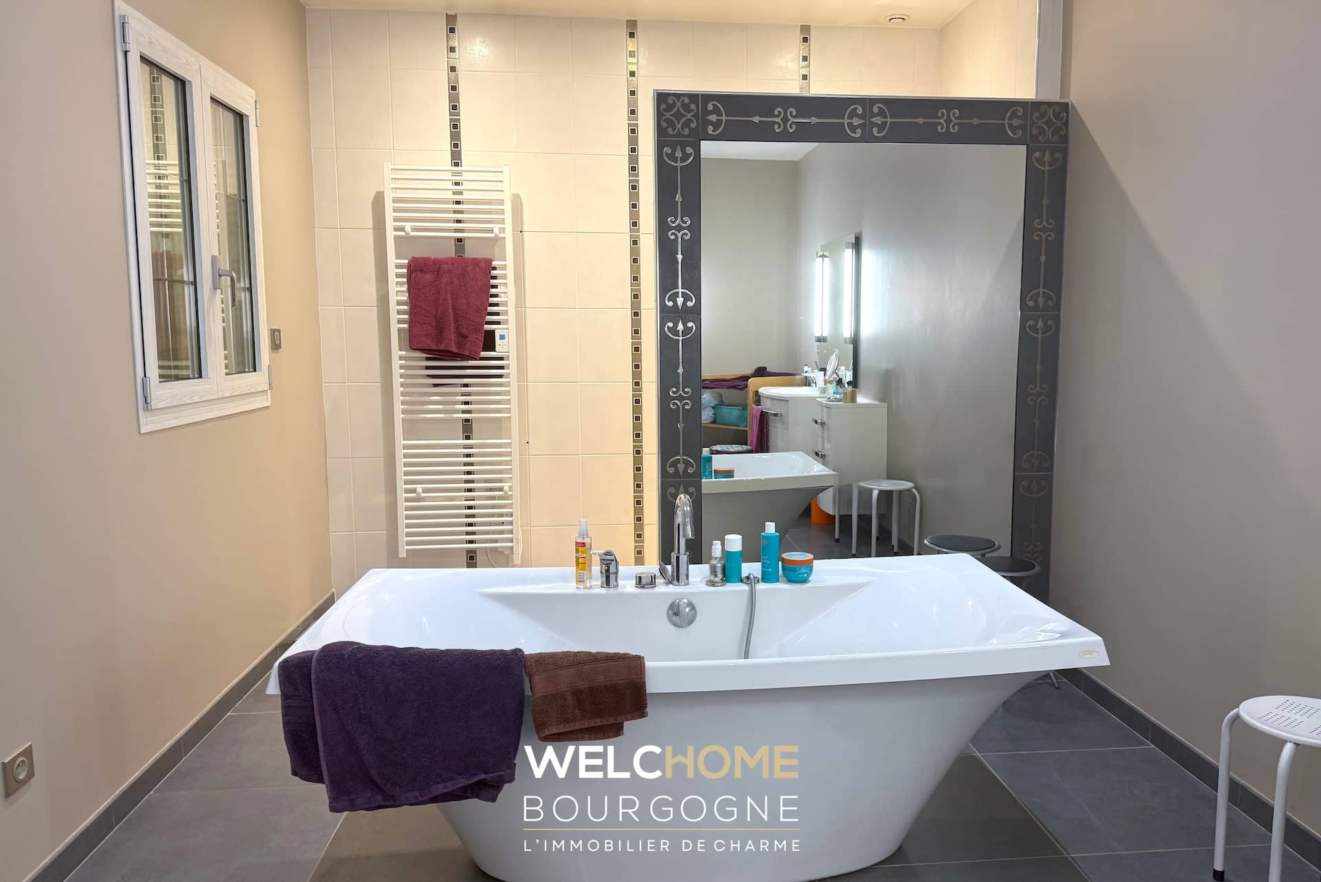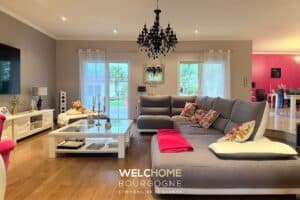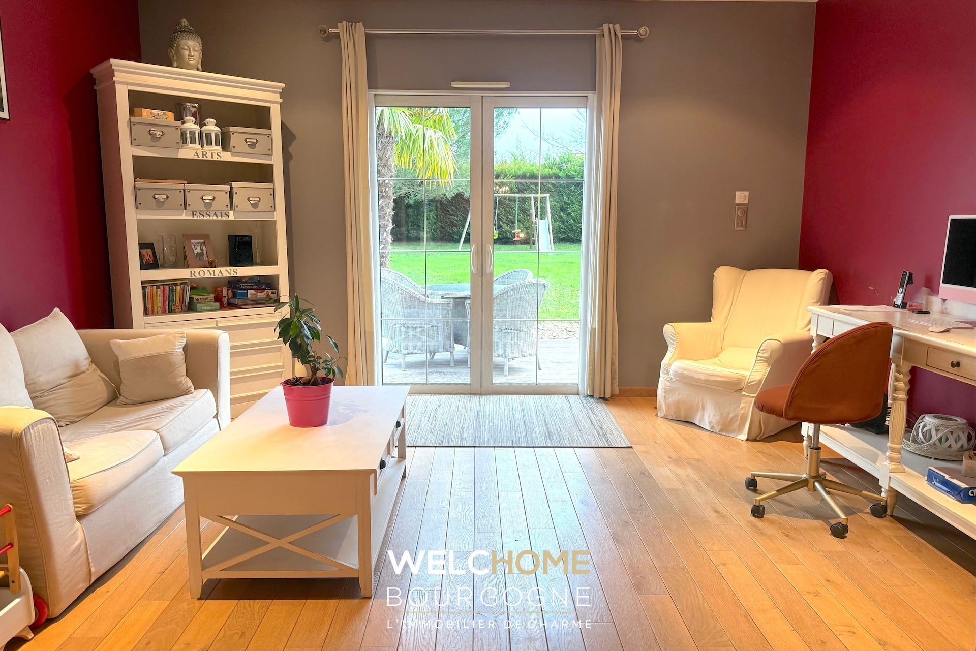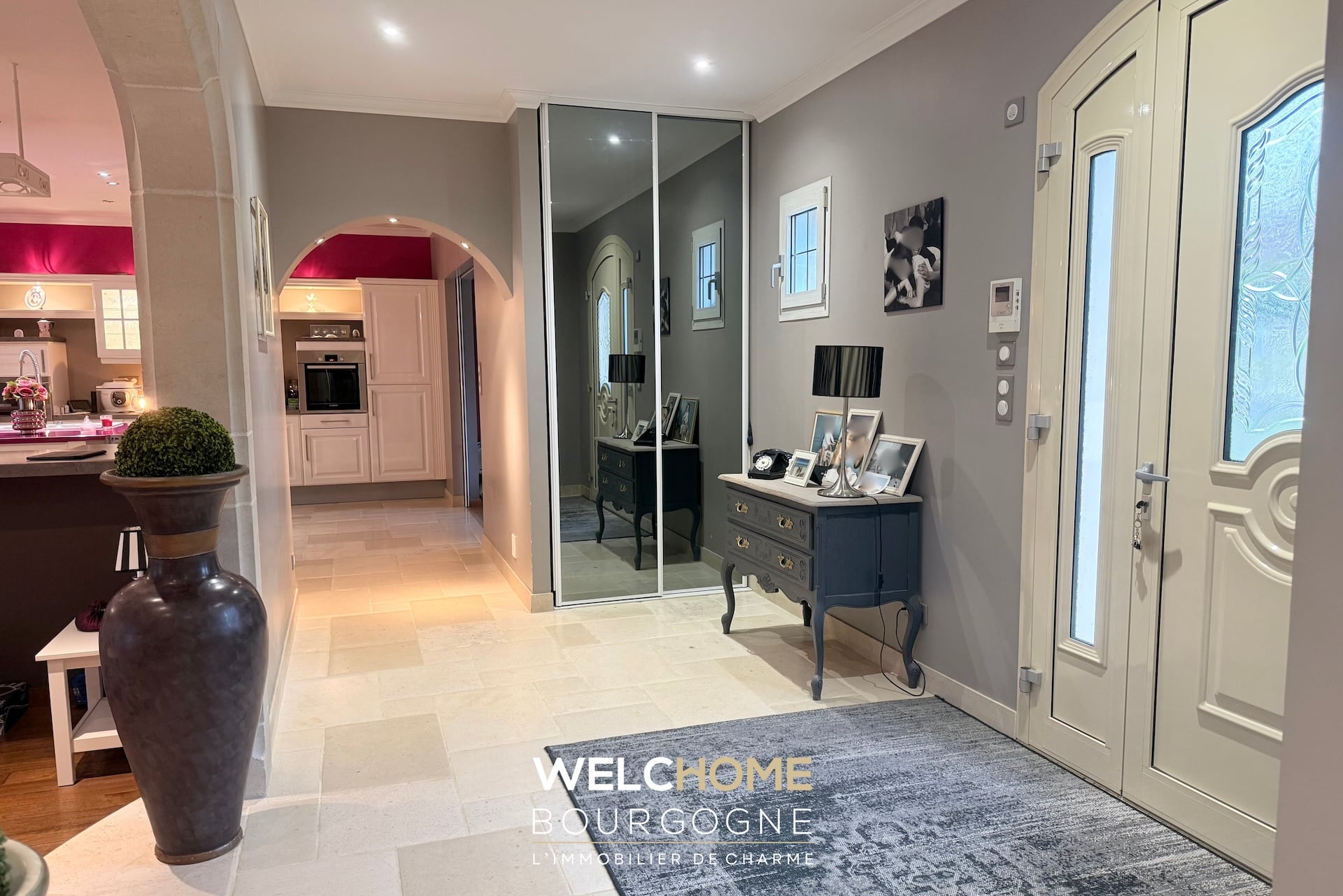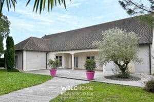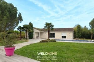 Dans un village recherché aux portes de Chalon-sur-Saône, cette propriété réunit trois bâtiments distincts — maison principale, vaste pool house et grand garage indépendant — pour offrir une véritable maison de famille, pensée pour recevoir et vivre au calme dans un environnement privilégié.