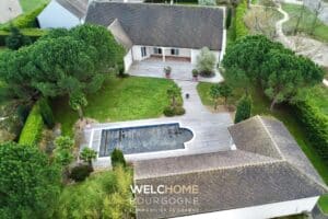 Villa contemporaine – 261 m² habitables – Pool house 90 m² – Garage 100 m² – Terrain paysagé de 3 325 m² – 10 min de Chalon-sur-Saône