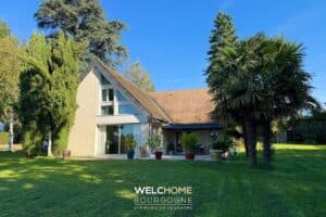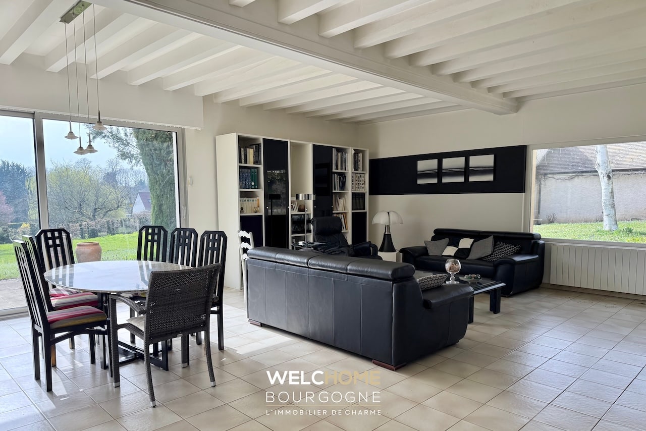 Dans un village recherché de la Côte Chalonnaise, cette villa contemporaine construite en 1979 séduit par son architecture avant-gardiste, ses volumes généreux et ses larges ouvertures tournées vers la nature.